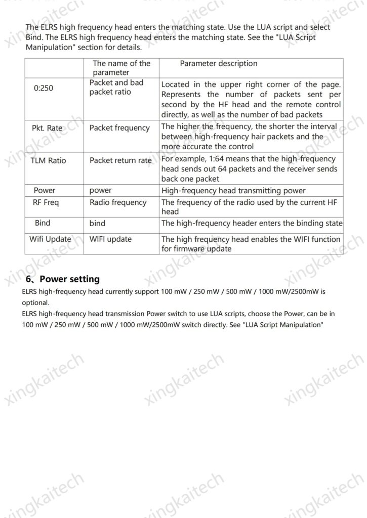 - By default, the ELRS-2.5W-TX high-frequency head only accepts signals from the Crossfire Serial Data Protocol (CRSF). The high-frequency head interface of the remote control needs to support CRSF signal output. The following takes the OpenTX remote control system as an example to illustrate how to configure the remote control to output CRSF signals and use the LUA script to control the ELRS high-frequency head.